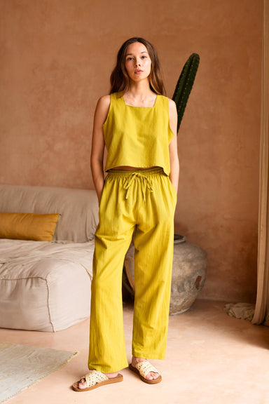 Lightweight, breathable, and effortlessly chic, this sleeveless crop top is crafted from a soft linen-cotton blend that combines structure with sof...