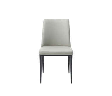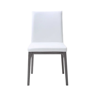 Make your dining room stand out with the set of two white and gray upholstered faux leather dining side chairs. This armless chair has a sleek silh...