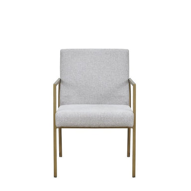 Bring this comfortable light gray and brass upholstered fabric dining arm chair to your table to enjoy long lasting quality time with your family a...