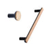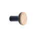 Black and Oak Wood "Bis" Cabinet Knob and Drawer Handle. Based on the idea of fusing different materials, Bis was designed to highlight the contrast between the strong Zamac base combined with a warm and soft wooden front. From a sustainable perspective Bis only use the necessary dimensions required to function. The combination of these materials shows a complexity where form follows function, offering the consumer the best of both worlds.