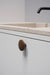 Lacquered Walnut Wood "Discos" Straight Drawer Pulls. Its distinctive curved front adds a subtle elegance while offering an aesthetic experience. With a slightly recessed front, Ante invites the consumer to immerse themselves in the beauty and comfort of the design. The fine outline of the profile adds character and depth to the handle, making it a beautiful eye-catcher on your furniture.