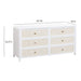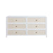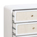 Introduce a touch of summery bohemian grace to your bedroom with the Patty White Rattan 6 Drawer Dresser, where functional storage and natural beauty collide. Crafted with natural cane rattan and accented with solid zinc handles, this dresser exudes a clean, bright contemporary finish. Its soft-close drawers ensure a serene, effortless experience, blending seamlessly into a modern lifestyle.