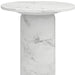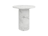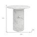 Show off your exquisite taste with this 16-inch white marble and wood round pedestal end table. The white coloration runs throughout this good looking manufactured wood and marble table. A great accent on either side of the sofa or bed, this adorable end or side table is just what you need. This versatile table is a great accent for most any room. 15.7-inch h x 21.6-inch w x 21.6-inch d.