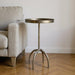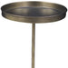 Distinctive in style the 23-inch brass distressed iron round pedestal end table radiates a versatile charm. This table is made from iron in a brass color throughout the base and top and features a tray style top with raised edges. Complete with a purposefully distressed finish, this table has an aged, vintage, and rustic feel. Side tables are a great way to flank your sofa, use as an accent next to your favorite chair, or can even be used bedside. You can also use it as an entryway table to hold your keys. 23-inch h x 12-inch w x 12-inch d.