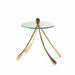 Whimsical and modern, our Wishbone Accent Table is available in gold with a glass top. It's great as a drinks table next to a chair or a sofa. Each of our creations is designed in our San Francisco studio. Master craftsmen using centuries old technique of sand casting create the original mould and skilled artisans hand create every piece, with pride, in our family owned factory. Details Dimensions : 20.25" H; 19.75" L; 15" W Finish : Goldplate with Glass Top Material : Aluminum, Glass Use and Care Given its handmade and hand-finished nature, variations in the piece are to be expected and celebrated. No two pieces are exactly alike.