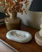 The Maddi is a chunky, six-inch oval catchall cut from a single piece of solid marble or stone with a large, playfully modern “puffed” border, hand-finished by artisans in a growing stone atelier in Rajasthan, India.