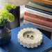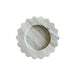 The Mini Sun is a sculptural five inch round catchall cut from a single piece of solid marble or stone with scalloped edges, hand-finished by artisans in a growing stone atelier in Rajasthan, India. Available with scoop or flat center.