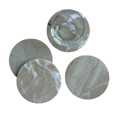 Oversized Coasters in Sea Grass The Coasters are a set of 4 five-inch round beverage holders cut from a single piece of solid marble or stone ...