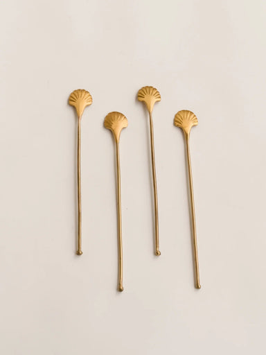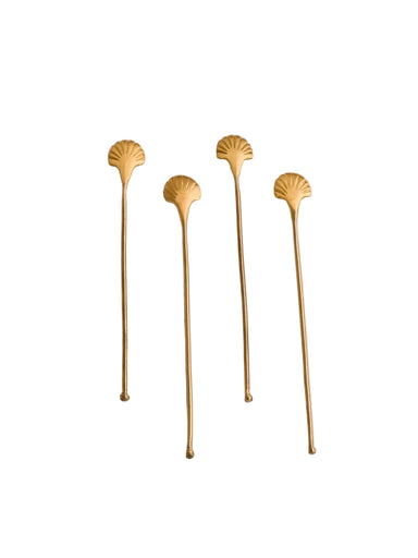 S/4 Seashell Drink Stirrers - Large Stir in style with our seashell head stirrers. They are good to keep or to gift! Hand crafted with brass.