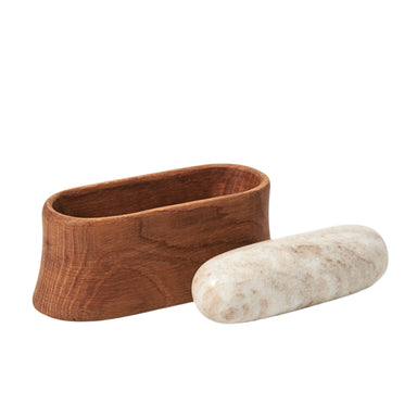 Oak Mortar and Marble Pestle Our modern Belfort mortar and pestle set offers a fresh twist on a traditional shape with its curved, oblong form. Imp...