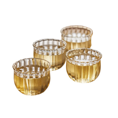 Kira Small Glass Cups - set of 4 Maker: Fleck Kira small cups are a perfect vessel for a tea ceremony, or use them to enjoy sake wine or other spir...
