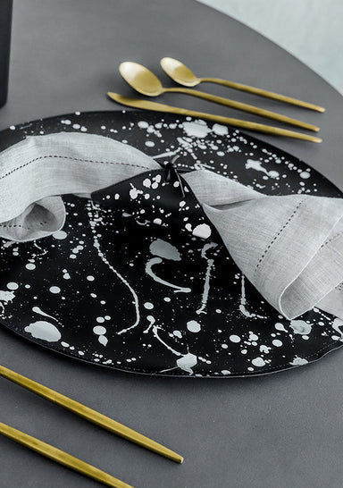 Soho Black Tray ARTISTIC NOTES Hand-painted white splashes for a modern chic and refined tabletop, in partnership with award winning interior desig...