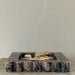 The Box is a sculptural eight by eight inch tray cut from a single piece of solid marble or stone with scalloped edges, hand-finished by artisans in a growing stone atelier in Rajasthan, India.