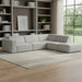 Designed for comfort and good looks, this 116-inch gray fabric sofa with ottoman with brown legs is a great option to anchor your space. Solid colors give you lots of decorative options and are easy to work into your decor scheme. Web suspension construction gives this piece strong support and makes it comfortable to sit even for long periods of time. A comfy ottoman is included as part of the package. Great to rest your feet or provide extra seating in a pinch. Fixed arms offer a comfy place to rest. Built to last, this sofa will be a great centerpiece for your room. 27.00-inch h x 116.00-inch w x 76.00-inch d.