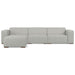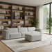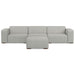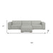 Transform your home's interior with this luxurious 122-inch gray fabric sofa with ottoman with brown legs. Solid colors give you lots of decorative options and are easy to work into your decor scheme. Web suspension construction gives this piece strong support and makes it comfortable to sit even for long periods of time. A comfy ottoman is included as part of the package. Great to rest your feet or provide extra seating in a pinch. Fixed arms offer a comfy place to rest. A great showpiece for your room, this sofa is a must have. 27.00-inch h x 122.00-inch w x 38.00-inch d.