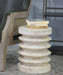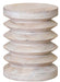 Show off your exquisite taste with this 18-inch brown solid wood round end table. Complete with a purposefully distressed finish, this table has an aged, vintage, and rustic feel. An ideal location for placing your snacks and drinks, and a place to keep your lamp, frames, or other accessories. You can also use it as an entryway table to hold your keys. 18-inch H x 14-inch W x 14-inch D