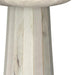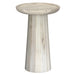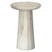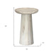 Distinctive in style the 19-inch white solid wood round end table radiates a versatile charm. This table features quality construction from solid wood and an updated monotone color scheme with white as the main color on both the top and the base. Side tables are a great way to flank your sofa, use as an accent next to your favorite chair, or can even be used bedside. This versatile table is a great accent for most any room. 19.00-inch h x 13.00-inch w x 13.00-inch d.
