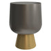 Optimize your space and add some charm to your room with the 20-inch antiqued brass aluminum round end table. This table is made from aluminum in a antiqued brass color throughout the base and top. An ideal location for placing your snacks and drinks, and a place to keep your lamp, frames, or other accessories. This versatile table is a great accent for most any room. 20.00-inch h x 13.75-inch w x 13.75-inch d.