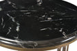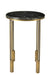 Show off your exquisite taste with this 23" gold and black marble and iron round end table. Quality construction from the gold iron base combines with black marble of the top to give this table a fresh and updated look. An ideal location for placing your snacks and drinks, and a place to keep your lamp, frames, or other accessories. You can match it with other pieces to get the ideal look for your place. 23" H x 16" W x 16" D