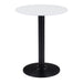 An ideal location for placing your snacks and drinks, this Black and White Round End Table will make a bold and unique statement in your kitchen, lounge area, office or living room. The stylish white veneer tabletop centers on a solid base and pedestal finished in black giving it a contemporary contrast that will look great in your space. This versatile round bistro style table is a great for entertaining or intimate dining. It is a great space-saving option for small dining rooms eat-in kitchens or lounge areas. 29.5" H x 23.6" W x 23.6" D