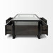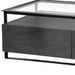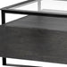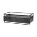Make your living room or family room really stand out with this 30" clear black glass rectangular coffee table with four drawers and shelf. The clear glass top of this table is a nice visual contrast to the high quality, black metal of the base. Includes a single shelf for handy storage or display space. The tray top option makes this coffee table multi-functional and an exciting way to accent your space. This rectangular table is an classic yet updated way to accent your room. It has a fresh design that will definitely breathe some fresh air into your interior. This coffee table is the sturdy, reliable and stylish answer to your living room needs. 18" H x 30" W x 54" D