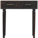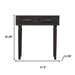 Our 32-inch brown solid wood solid console table and with two drawers a great addition to any room, serving as a stylish and decorative element. This rectangular table is ideal for up against the wall, can free stand in a room, or sit behind the sofa perfectly. The brown hardwood table surface makes this unit stand out with its high quality material and construction. The solid of this unit is crafted with solid wood, leaving you with a console table that is of the finest quality and materials. Versatile in use, console tables can be used for a variety of purposes in a variety of rooms and settings. 32.28-inch h x 31.50-inch w x 13.78-inch d.
