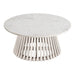 This stylish 32-inch white and natural genuine marble and solid wood round drum coffee table is sure to inspire compliments no matter where it sits. Quality construction from the natural solid wood base combines with white genuine marble of the top to give this table a fresh and updated look. If you're looking for something that can fit into a living area, bedroom, or office, this coffee table is for you. 15-inch h x 32-inch w x 32-inch d.