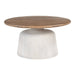 Give your living room, family room, or office the perfect anchor piece with this 32-inch white solid wood and wood round pedestal coffee table. A sleek white monotone color gives this manufactured wood and solid wood table a fresh and updated look. If you're looking for something that can fit into a living area, bedroom, or office, this coffee table is for you. 15.7-inch h x 32-inch w x 32-inch d.
