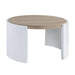 Make a statement with the 33-inch oak and white wood round partial frame coffee table and infuse a dash of character and personality into your space. The top of this manufactured wood table features a thick natural colored oak round surface, while the base is a nice compliment in a partially open frame with a shiny high gloss finish. If you're looking for something unique and contemporary that can fit into a living area, bedroom, or office, this coffee table is for you. 18.00-inch h x 33.00-inch w x 33.00-inch d.