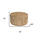 This stylish 36-inch brown solid wood round solid coffee table is not only practical, but good looking and built to last. This table features quality construction from solid wood and an updated monotone color scheme with brown as the main color on both the top and the base. If you're looking for something that can fit into a living area, bedroom, or office, this coffee table is for you. 18-inch h x 36-inch w x 36-inch d.