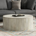 This stylish 36-inch white solid wood round solid coffee table is not only practical, but good looking and built to last. This table features quality construction from solid wood and an updated monotone color scheme with white as the main color on both the top and the base. It has an attractive design that will definitely breathe some fresh air into your interior. 14.00-inch h x 36.00-inch w x 36.00-inch d.
