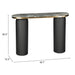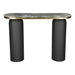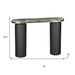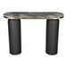 Transform your home with our elegant and versatile 43-inch black and gold genuine marble and steel double pedestal console table. This oval top console table is ideal for up against the wall, can free stand in a room, or sit behind the sofa perfectly. The genuine marble table will add beauty to any room with its alluring and distinctive veining of the stone and golden trimmed edges. In addition to a great top, our console table has a uniquely shaped steel double pedestal base. Ideal for living rooms, bedrooms, lobbies, home offices, and lounge areas, this console table is a unique and modern chic way to accent your space. 30.30-inch h x 43.00-inch w x 13.00-inch d.