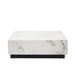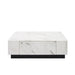 Make your living room or family room really stand out with this 47-inch white and black cement and wood square block coffee table with two drawers. The white cement top of this table is a nice visual contrast to the high quality, black solid and manufactured wood of the base. This square table utilizes its unique shape to give your room a modern geometric accent. If you're looking for something that can fit into a living area, bedroom, or office, this coffee table is for you. 15.00-inch h x 47.00-inch w x 47.00-inch d.