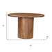 Add handsome, fashionable design to your dining space with this 48-inch brown solid wood pedestal base round top dining table. You will add an updated and fresh look to your dining space with this brown solid wood table. A beautiful pedestal base adds some dimension and elegance to your dining. Seat up to 4 family and friends around your new dining table. This table is the sturdy, reliable and stylish answer to your dining room needs. This eye-catching dining table is ready for you to enjoy breakfast for one or entertain your guests. 30.00-inch h x 48.00-inch w x 48.00-inch d.