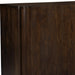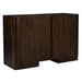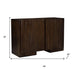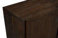 Storage vessels don't have to be unsightly. Increase your storage space and the fashion quotient of your room with this hard wearing, versatile, and good looking cabinet. This sideboard, crafted from solid wood, showcases a modern style that enhances any décor. The rich dark brown color adds warmth and sophistication to your living space. Featuring purposeful distressing with wood scoring and rub through, it offers a charming vintage appeal. With ample shelves included and paneled doors, this sideboard combines functionality and aesthetic allure seamlessly. Enjoy both practicality and elegance as you organize your essentials in style. 32-inch h x 48-inch w x 20-inch d.