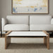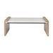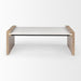 This stylish 48-inch natural and white genuine marble and solid wood sled coffee table is sure to inspire compliments no matter where it sits. A chic natural and white color combination gives this solid wood and genuine marble table a fresh and updated look. The solid wood slab side legs support the rectangular white marble to give this piece a unique geometric and modern design. The epitome of quality construction and design, this table is a classic yet updated way to accent your room. It has an attractive design that will definitely breathe some fresh air into your interior. 16-inch h x 48-inch w x 28-inch d.