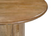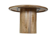 Make a statement with the 48-inch natural solid wood pedestal base round top dining table and infuse a dash of character and personality into your space. This table is made from solid wood in a natural color throughout the base and top. The purposefully distressed finish gives this table an authentically rustic feel. This table features a pedestal base that adds some depth and interest to your space. This dining table seats 4 people comfortably. Complete your kitchen or dining room with this well made and stylish table. The dining table plays a central part in your home. This design is a great way for you to enjoy dining and entertaining in style. 30.00-inch h x 48.00-inch w x 48.00-inch d.