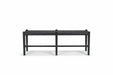 Add a good looking decorative accent to your space that is also practical for seating. A solid black solid wood frame is finished off with a matching black upholstery seat, giving this bench a chic monotone look. Expertly upholstered with padding in a soft solid color genuine leather, this bench is as comfortable as it is good looking. Ideal for entrance foyer, hallway, or laundry room. This bench is a great place store your keys, put on your shoes, or be a catchall on your way in or out. Easy to blend into most any room, a bench is a way to add a good looking accent to your space that can also be practical and useful. 18.75-inch h x 52-inch w x 16.5-inch d.