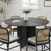 This good looking 52-inch black solid wood pedestal base round top dining table is sure to inspire compliments. You will add an updated and fresh look to your dining space with this black solid wood table. This table features a pedestal base that adds some depth and interest to your space. This table is the sturdy, reliable and stylish answer to your dining room needs. The dining table is a symbol for togetherness, special meals, and conversation. This 52-inch black solid wood pedestal base round top dining table is a must-have for your home. 29.72-inch h x 51.52-inch w x 51.52-inch d.