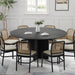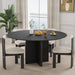 Make a statement with the 58-inch black solid wood pedestal base round top dining table and infuse a dash of character and personality into your space. This table features quality construction from solid wood and a sleek monotone color scheme with black as the main color on both the top and the base. This table features a pedestal base that adds some depth and interest to your space. Complete your kitchen or dining room with this well made and stylish table. This eye-catching dining table is ready for you to enjoy breakfast for one or entertain your guests. 29.72-inch h x 58.46-inch w x 58.46-inch d.