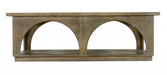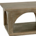 Stylish and super sturdy, the 59-inch brown solid wood distressed floor shelf coffee table with shelf is an amazingly good looking coffee table that will compliment your living room. This table is made from solid wood in a whitewashed brown color throughout the base and top and features gorgeous arche carved detailing . The purposefully distressed finish gives this table an authentically rustic feel. Help to keep your space organized with the included single shelf. 19-inch h x 59-inch w x 32-inch d.