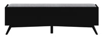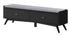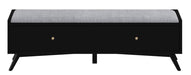 Practicality and fashion mix together with this handy 59-inch gray and black fabric upholstered storage bench with drawers. The gray upholstery top of this bench is a nice contrast to the high quality, black solid wood of the base. Expertly upholstered with padding in a soft solid color polyester blend, this bench is as comfortable as it is good looking. This multi-function bench features drawers in addition to seating to help keep your space neat and tidy. Adding this bench to the end of your bed is a great idea to help you get ready in the morning. Easy to blend into most any room, a bench is a way to add a good looking accent to your space that can also be practical and useful. 18.5-inch h x 59-inch w x 15-inch d