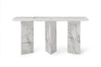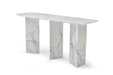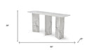 This 60-inch white genuine marble and stone three leg console table is a high-quality, long-lasting piece of furniture that you can enjoy for years to come. This rectangular table is ideal for up against the wall, can free stand in a room, or sit behind the sofa perfectly. If you are searching for a unique piece of furniture, choose this white console table with its gorgeous genuine marble top. Each slab has true veining and not two are exactly alike. The three leg base is made of strong, long lasting and reliable stone material. Ideal for living rooms, bedrooms, home offices, and lounge areas, this console table is not only good looking but multi-functional and practical addition to your space. 29.00-inch h x 60.00-inch w x 18.00-inch d.
