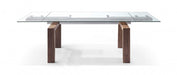 Add handsome, fashionable design to your dining space with this 63-inch clear and brown glass self-storing leaf dining table. The brown coloration of the high quality manufactured wood base marries nicely with the clear glass top surface. The two-tone finish gives it a fresh and updated look. Glass top dining tables have a modern and contemporary flair but are super practical and easy to wipe clean. Complete your kitchen or dining room with this well made and stylish table. This eye-catching dining table is ready for you to enjoy breakfast for one or entertain your guests. 30-inch H x 63-inch W x 35-inch D