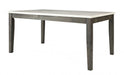 Enjoy making memories around this gorgeous 64-inch white and gray marble and solid wood dining table. Quality construction from the gray solid wood base combines with white marble of the top to give this table a fresh and updated two-tone look. Seat up to 6 family and friends around your new dining table. This table is the sturdy, reliable and stylish answer to your dining room needs. This eye-catching dining table is ready for you to enjoy breakfast for one or entertain your guests. 30-inch H x 64-inch W x 38-inch D