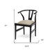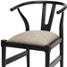 Out with the old and in with the new, this beige and black upholstered linen wishbone back dining side chair can perfectly suit any dining table. This armless chair has a sleek silhouette making it ideal for seating around the table but can also double as an accent chair. The wishbone back gives this chair its unique style. Dining chairs are a great way to compliment your kitchen or dining room but can also be used in the foyer, hallway, or any room you might need extra seating. 31-inch H x 22.5-inch W x 20-inch D