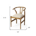 This beige and brown upholstered fabric wishbone back is not only good looking, but it also provides long lasting support. The wishbone back gives this chair its unique style. Dining chairs are a great way to compliment your kitchen or dining room but can also be used in the foyer, hallway, or any room you might need extra seating. 31.3-inch H x 24-inch W x 20-inch D