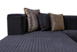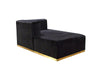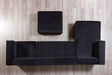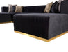Designed for comfort and good looks, this black velvet modular u shaped four piece sofa and chaise sectional with toss pillows is a great option to anchor your space. Solid colors give you lots of decorative options and are easy to work into your decor scheme. Great for everyday lounging and for entertaining, sectionals are an ideal way to seat multiple people. This modern style features all over vertical tufted stitching and gold accents that will work for home or commercial settings. 29.92-inch h x 140.00-inch w x 35.00-inch d.