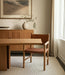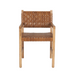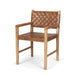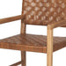 Out with the old and in with the new, this brown woven leather and solid wood dining arm chair can perfectly suit any dining table. Complete with a tightly woven leather back and seat, this chair not only looks good but is comfortable. Dining chairs are a great way to compliment your kitchen or dining room but can also be used in the foyer, hallway, or any room you might need extra seating. 33.25-inch h x 21.5-inch w x 21-inch d.