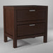Clean lines and a touch of contemporary styling are the appeal of the Carmel 2-Drawer Nightstand.  Rich solids and veneers are highlighted by a rich Cappuccino finish.  Two storage drawers with nickel hardware provide spacious storage.  The off-the-floor design simplifies cleaning.  Coordinates with other pieces from the Alpine Furniture Carmel bedroom collection sold separately.